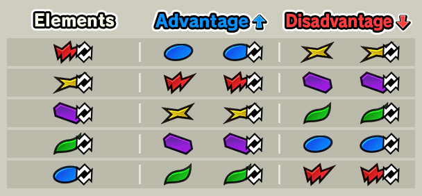Vous infligerez plus de dégâts avec un personnage d'un attribut avantagé, et moins de dégâts avec un attribut désavantagé.