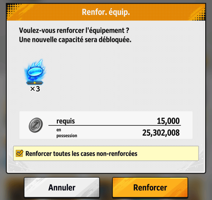 Afin de simplifier le renforcement des équipements, vous pouvez désormais cocher « Renforcer toutes les cases non-renforcées » pour effectuer un renforcement généralisé des emplacements non renforcés.