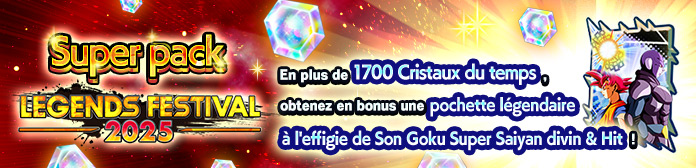 Un super pack débarque pour célébrer le lancement du LEGENDS FESTIVAL !Avec des Cristaux du temps, obtenez en bonus une pochette sur le thème du LEGENDS FESTIVAL 2025 !