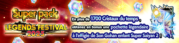 2 types de fabuleux packs sont disponibles pour fêter le lancement du LEGENDS FESTIVAL !Procurez-vous ces packs d'objets comprenant entre autres du Multi Pouvoir Z pour personnages LL !