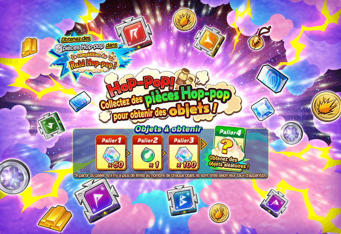 Tentez « La compétition du Raid Hop-pop ! » et obtenez des « Pièces Hop-pop » !Terminez-la pour obtenir à coup sûr des « Pièces Hop-pop » !