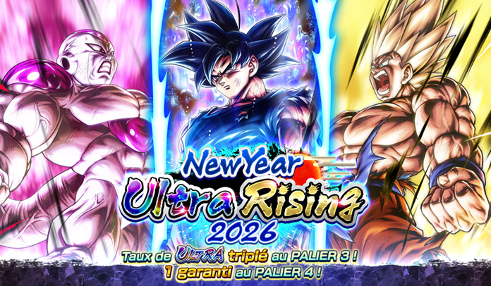 Les « Ticket de tirage NEW YEAR ULTRA RISING 2026 » inclus dans les Sacs du Nouvel An Ultra ainsi que dans les Sacs du Nouvel An - Or et Argent permettent d'effectuer un tirage par palier avec 1 ULTRA garanti à partir du palier 4 !